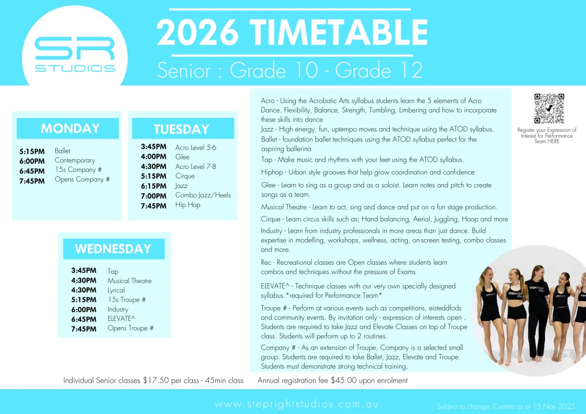 2026 YR 10+ CLASSES